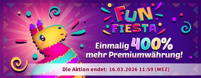 Vom 09. März ab 12:00 Uhr bis zum 16. März um 11:59 Uhr bekommst du einmalig 400 % mehr Premiumwährung beim Kauf des kleinsten Pakets im Shop. Du erhältst 50 statt der üblichen 10 Premiumwährung.